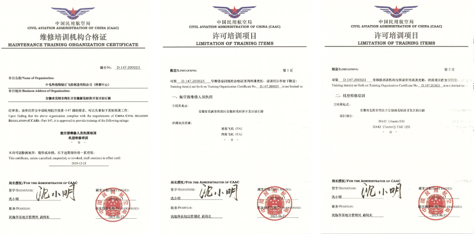 - 安徽首家|電科飛機(jī)新增民用航空器維修人員執(zhí)照 渦輪飛機(jī)(TA)培訓(xùn)能力
